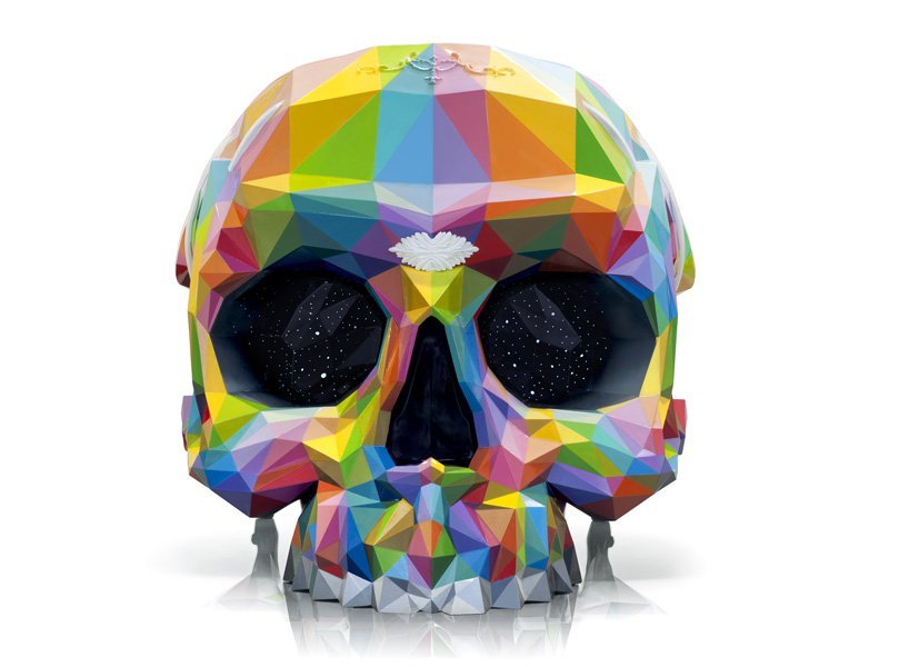 Skull Armchair was designed by Harow in his workshop in France, in Madrid Okuda finished painting it by hand.More info: Smeg Two/077 Aida table lamp Dior font